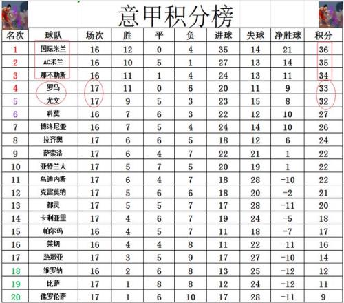 意甲最新積分戰(zhàn)報(bào)爭(zhēng)4激烈!羅馬止住頹勢(shì)超尤文1分重回前4
