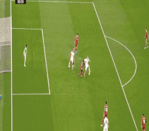 第31分鐘,阿利松門前玩火,外腳背將球傳到中路,阿姆帕杜的射門沒有力量和速度,阿利松將球沒收。