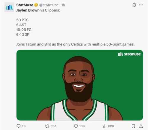 3.35分鐘拿到50+比肩伯德、塔圖姆隊史第三人;