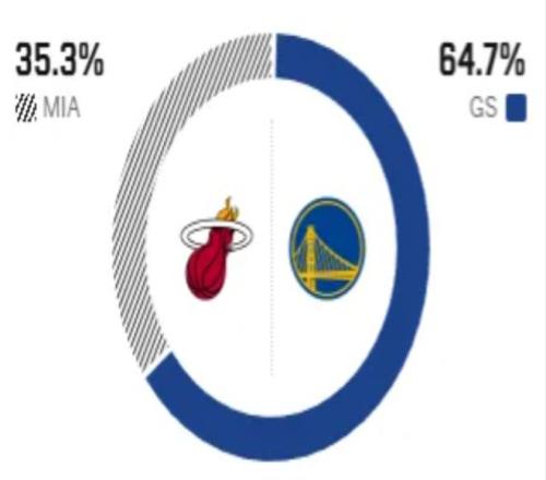 這是兩隊(duì)本賽季的第二次交手,上一次交手熱火以14分之差大勝勇士。賽前,美媒ESPN對(duì)本場(chǎng)比賽進(jìn)行了勝率預(yù)測(cè),熱火的勝率僅有35.3%,劣勢(shì)明顯,勇士隊(duì)的勝率則高達(dá)64.7% 。
