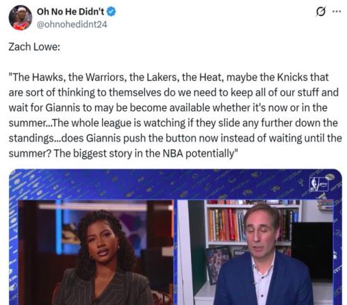 字母哥再度入選榜單,主要是因?yàn)槊沍ach Lowe曝出、紐約、勇士、湖人、等一眾球隊(duì)都在考慮是否保留全部籌碼以等待得到字母哥的潛在交易機(jī)會(huì)。