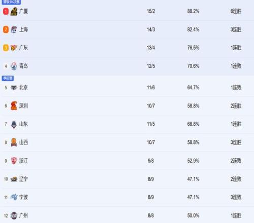 CBA最新排名!上海緊咬廣廈居前2,遼寧跌至第十,新疆有望覺(jué)醒!
