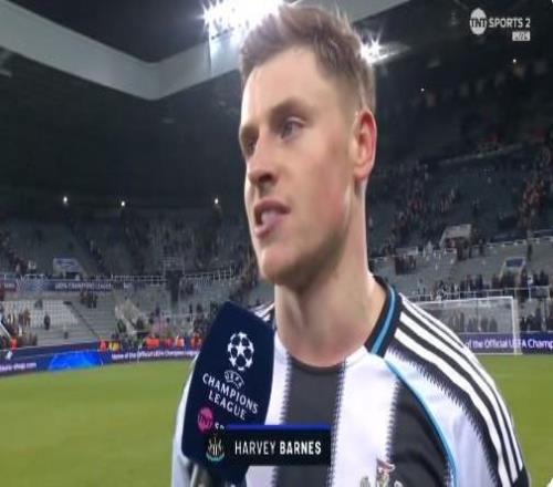 歐冠聯(lián)賽階段第7輪,紐卡主場3-0戰(zhàn)勝埃因霍溫,本場比賽打入1粒進(jìn)球的紐卡前鋒哈維-巴恩斯賽后接受了TNT體育的采訪。